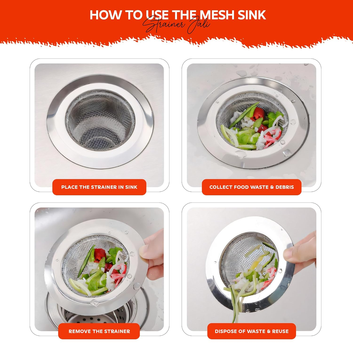• MULTIPURPOSE FIT FOR SINKS & DRAINS: Perfect as a Kitchen Sink Drain Filter, Sink Drainer, or Jali for Bathroom Drain, This Compact Strainer Fits Standard Drain Sizes in Wash Basins and Sinks